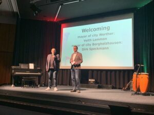 Am Mittwoch, den 15. April fand am Standort in Werther die große Begrüßungsfeier an der PAB statt. Bunt, laut, kreativ und vielfältig sah das Programm aus. Neben Schulleiterin Frau Husemann und den Kenia Club Vorsitzenden Nadine Witt und Andy Schulz begrüßten auch die Bürgermeister Veith Lemmen und Dirk Speckmann der beiden Schulstandorte die besonderen Gäste aus Kenia.